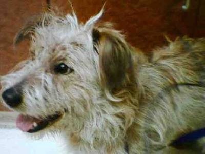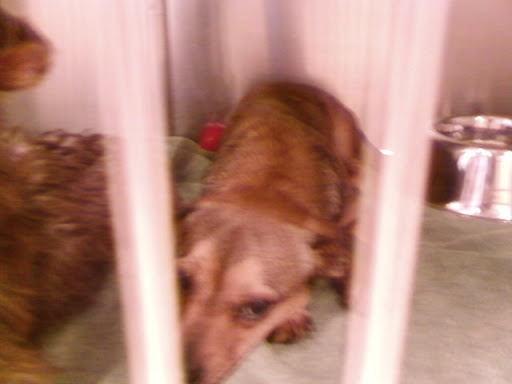 So we decided to go looking at shelters. You hear all the time that shelters are a great place to find a great dog, right? You're a hero, you're saving a poor little dog from a terrible fate, it's less expensive than buying a purebred puppy, it's humane, yada yada yada. Well, maybe if you have the option of having any size dog. But when you are limited to a 30 pound weight restriction and a small apartment, really, it's a fight to get a dog in that range. Want a puppy? Forget it! On our first visit to the Rancho Cucamonga animal shelter we found this guy the shelter was calling Nutter. This picture doesn't really do him justice, but here he is. He was a sweet dachsund-beagle mix (yes, I wanted to call him the Oscar Meyer Snoopy Dog), who warmed up to us immediately in the meet & greet room.