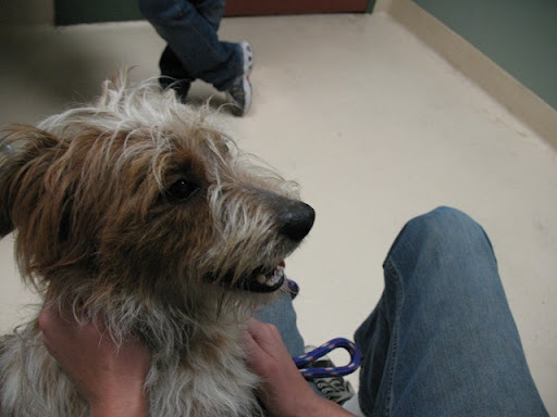 Our happy little bubble got burst when someone from the shelter came in the room and said he had just been approved for adoption to another family, so they took him out and we were quite sad. We went looking at several other shelters, but no one compared to this guy and his little perma-puppy face (he was full-grown but still had the look of a puppy). We were out of town for the weekend so we gave it a rest with the shelters, but went back today and got to meet someone who we are hoping to bring home very soon. We tried to adopt her today only to find out she's not available until tomorrow (doh!) because of the holiday. So we'll be there when the shelter opens at 1pm to secure her for sure. Her name is going to be Scout, and she is the sweetest mangy mutt you'll ever meet. Aaron was convinced he wanted a male dog, someone to be his buddy, but when she ran into the room and went straight to him, she had him. :) I'm very excited, but trying to keep my head on straight in case we have yet another shelter mishap. I think the worst that could happen is that her owner could claim her today, but I am doubtful of that happening.